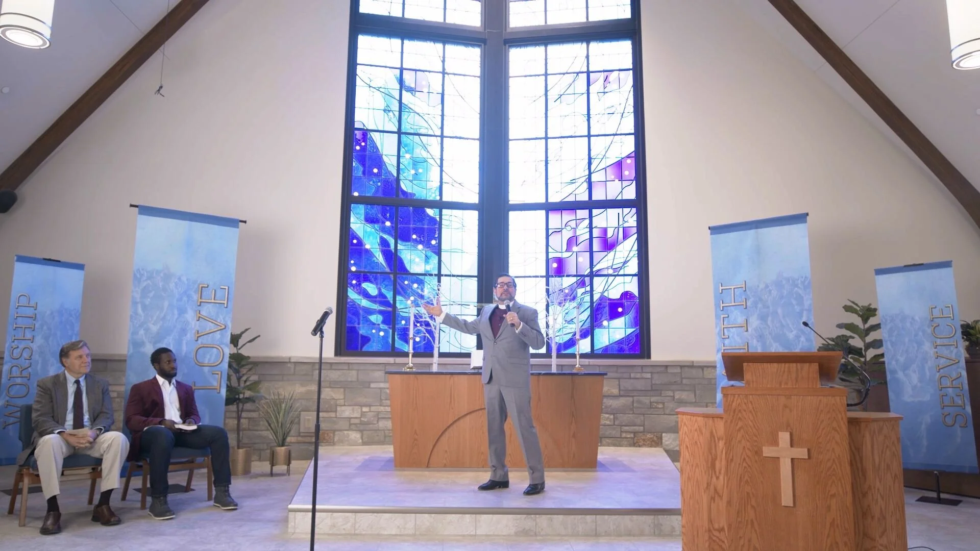 The production has been carefully produced to allow viewers to see important reactions of those listening. When Pastor Paul explains his newly formed ideas on his faith, the camera focuses on the concerned looks of those in the church – Elder Jay (Rick Richter), the pastor’s wife, Elizabeth (Marti Gobel), Associate Pastor Joshua (Andrew Muwonge) and Jenny, a congregant (Emily Vitrano). The camera tightly focuses on speakers as they passionately speak and often create artistic visuals, as when Associate Pastor Joshua and Pastor Paul face each other with colorful vertical stained glass rising behind them.